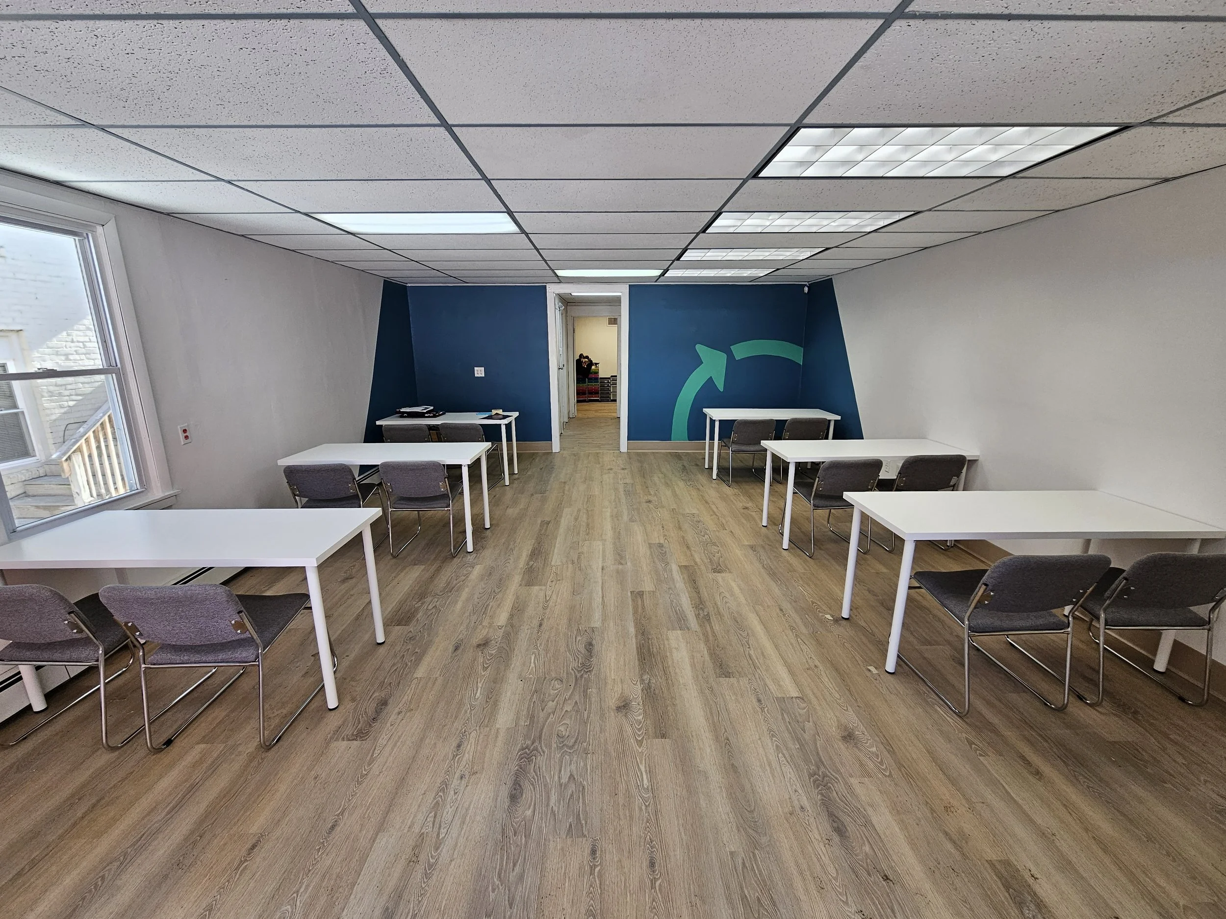 Room A is filled with natural lighting and individual desks. Perfect for classes, lectures, and instructions. Perfect for:
